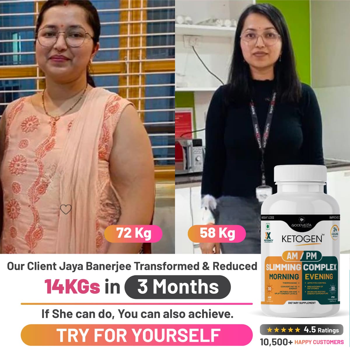 it is been a month since I started using Ketogen AmPm Complex. It helps to boost energy levels and lose almost 3kgs in a month. I take 2 capsules in a day one before breakfast and another before dinner.