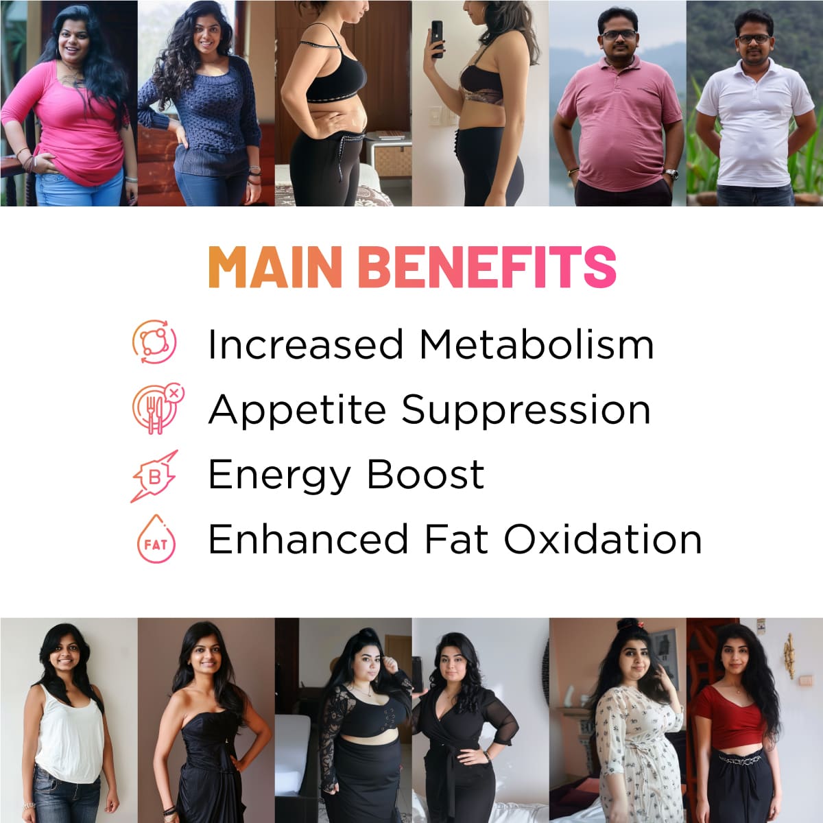 GoodVeda AM PM Slimming Complex supports your journey towards a balanced diet by helping to reduce cravings and promote satiety. With ingredients like Green Tea Leaf Extract and Garcinia, it aids in curbing appetite, making it easier to choose nutritious, whole foods over processed options. *